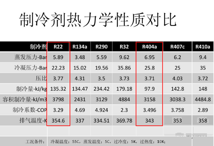 以前冷庫很多用R22制冷劑,現(xiàn)在使用R404A制冷劑越來越多,那么為什么冷庫用價格相對比較高的R404A制冷劑呢?R22和R404A冷庫系統(tǒng)有什么差異?首先,R22制冷劑是非環(huán)保制冷劑,歐美發(fā)達國家已經(jīng)淘汰使用。R404A雖然GWP值制冷劑高,算不上真正的環(huán)保制冷劑,但相對R22還是環(huán)保些。另外,R404A制冷劑的潛熱量比R22大,熱效率和制冷效率高,系統(tǒng)的循環(huán)量小,加注量也比R22少,制冷速度比R22更快,在同壓力下下的的對應(yīng)溫度比R22要低,所以現(xiàn)在冷庫設(shè)備很多用R404A制冷劑。