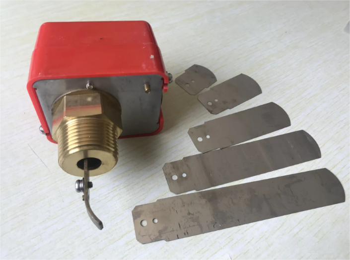 流量開關(guān)有可拆卸的流向片,可根據(jù)實際安裝狀態(tài)選用不同的流向片,如無合適長度的流向片,可用稍長的流向片修剪而成。但流向片安裝不得過短,太短會影響開關(guān)的靈敏度,嚴重的會使開關(guān)不動作。