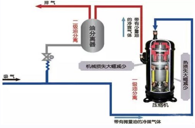 處理方法: 立即把五臺空調(diào)機組的外機移位到單根連接銅管長度規(guī)定范圍內(nèi)并加一定量的冷凍油。 在每個氟系統(tǒng)增加一個油分離器。