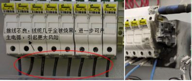 原因分析: 壓縮機的三個接線端子其中有一片燒毀,它上下的接線不導(dǎo)通,接線冷壓端子已成烏黑色,很明顯是接線壓頭松所致。