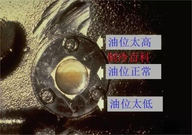 它是指潤(rùn)滑油在油儲(chǔ)存容器中的液面高度。冷水機(jī)的儲(chǔ)油容器都設(shè)置有油位顯示裝置,一般規(guī)定儲(chǔ)油容器內(nèi)的油位高度應(yīng)該位于視鏡中央水平線上下5mm。規(guī)定油位高度的目的是為了保證油泵在工作時(shí),形成油循環(huán)所需要的油量足夠。油位過(guò)低容易造成油泵不足,從而引起運(yùn)行故障或者損壞設(shè)備。